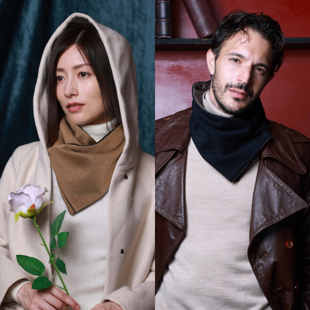 今回向き合ったのは「ビジネスマンの冬」です。極寒の屋外と、満員で暑い電車という環境を行き来する中で、上着を脱ぎ着する煩わしさを減らせないか。寒い場所では暖かく、暖かい場所では蒸れにくい。その相反する条件を成立させる答えとして、このマフラーにたどり着きました。